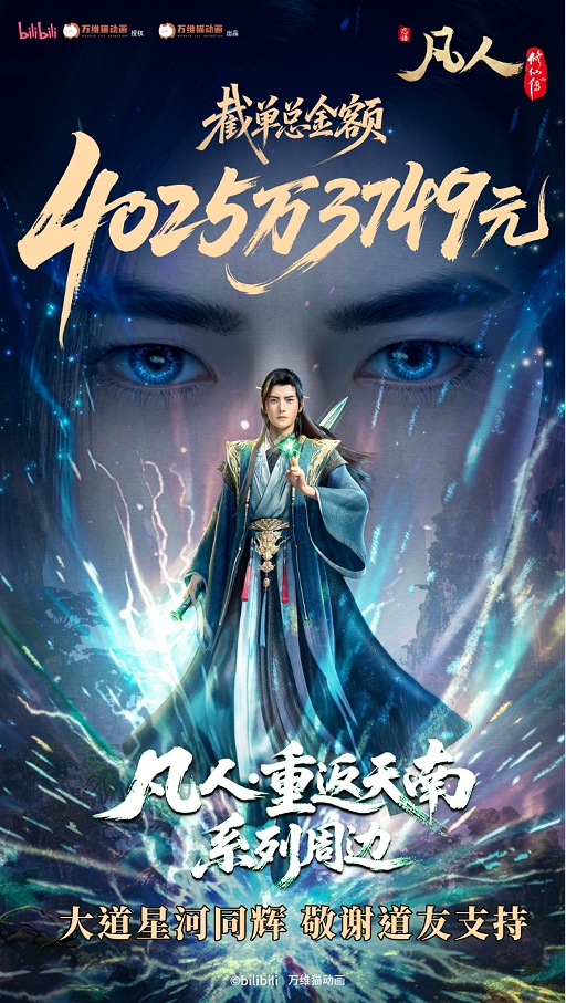 在商業(yè)價值上,《凡人修仙傳》動畫無愧《雷報》半月獎“2025最具商業(yè)價值動漫IP”認證,“重返天南”系列眾籌周邊截單總金額突破4025萬,創(chuàng)國產動畫周邊金額新紀錄,《凡人修仙傳》動畫視聽音樂會門票更是在上線1小時內全部售罄,形成優(yōu)質內容與商業(yè)消費相互促進的良性生態(tài)。